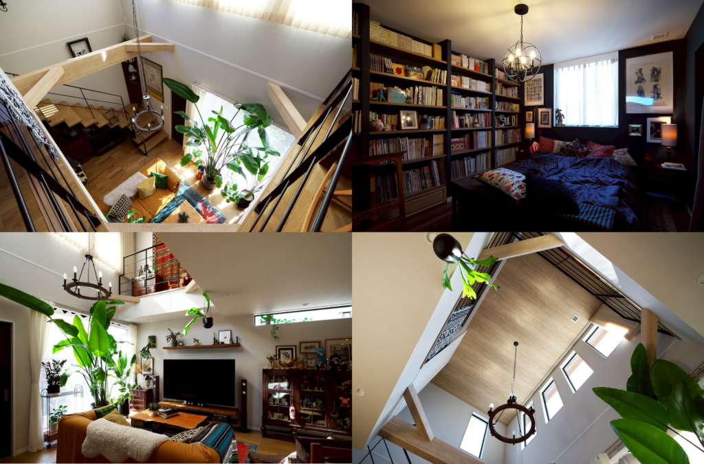 寝室や個室は、単なる寝るための部屋ではなく、住まい手の個性が感じられる空間になっています。壁一面の本棚を設けた部屋や、インテリアや照明にこだわった空間づくりは、建て替えによって「自分たちの好き」を住まいに反映した好例です。40坪前後の建て替えでは、部屋数や収納量だけを優先しがちですが、この事例のように暮らしの楽しみをつくる空間へきちんと面積を配分することで、新築後の満足度は大きく変わります。