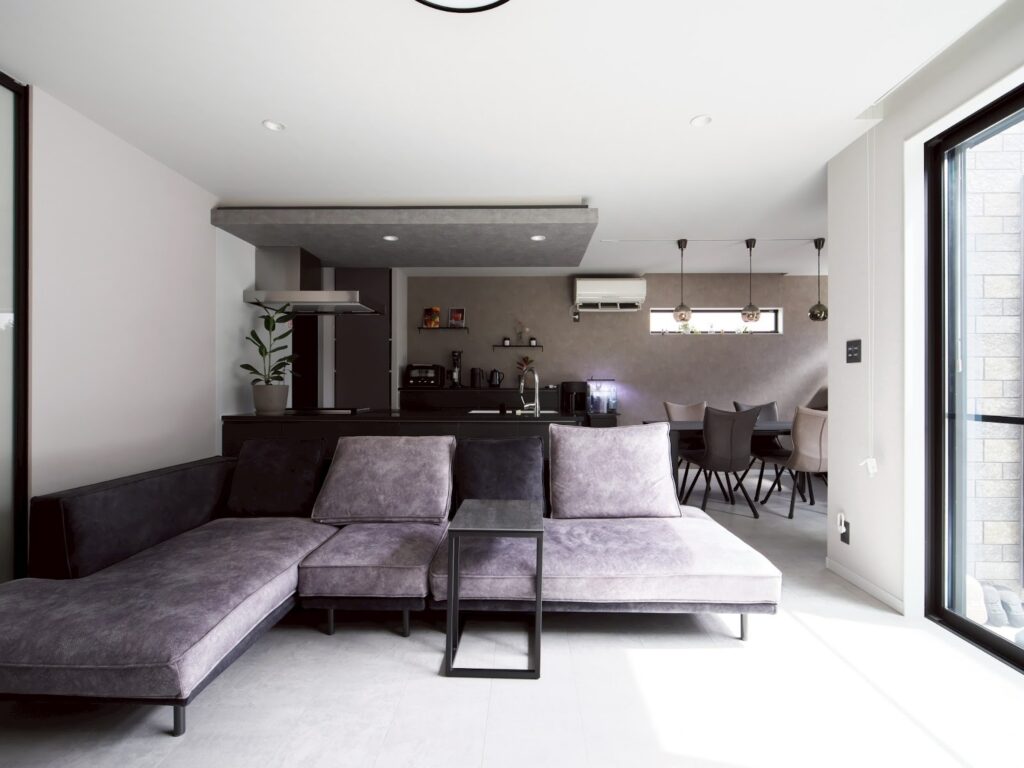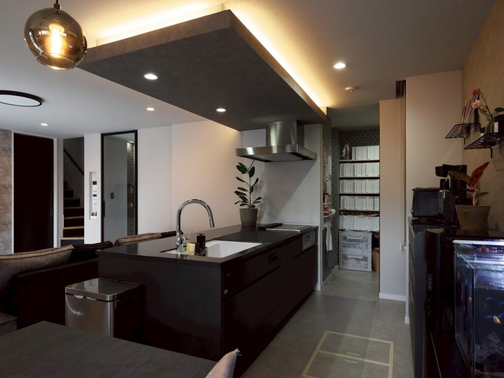外観から室内まで、黒・グレー・木目を基調にした統一感のあるデザインでまとめられており、いわゆる“二世帯住宅っぽさ”を感じさせない洗練された印象があります。